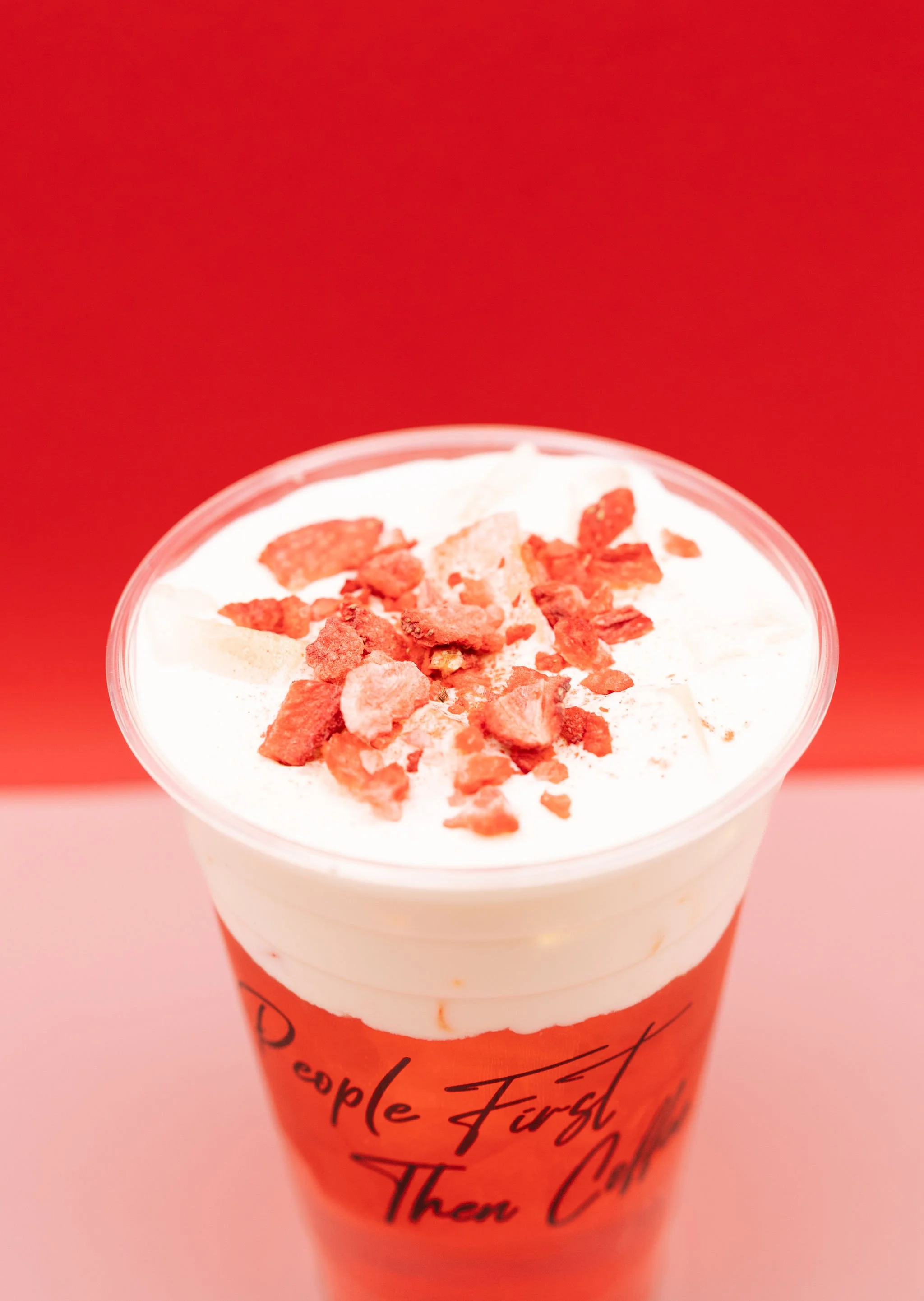 Strawberry Cheesecake, Red Bull, Vanilla Cold Foam, Strawberries